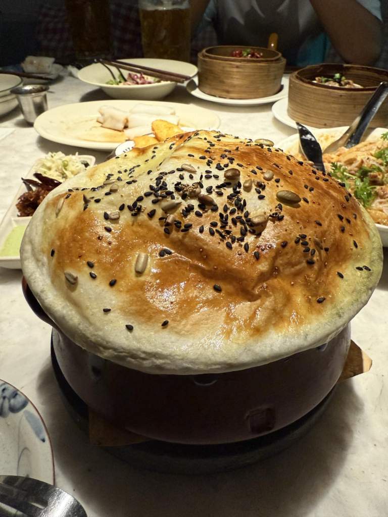 金黃蓬鬆的烤餅則是另一個驚喜。掰開時熱氣緩緩升起,芝麻與瓜子的香氣隨之散開。簡單卻帶著溫潤的口感,讓人忍不住一片接一片。這時候的氛圍,已經從剛結束工作的緊繃,轉換成輕鬆的分享時光。