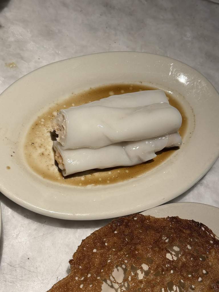 肉片鮮嫩帶著微辣,蒸氣裡透著暖胃的香氣;腸粉則柔軟細膩,入口滑順。厚實與輕盈的對比,讓大家分食時總忍不住笑著說「這一口該留給誰」。