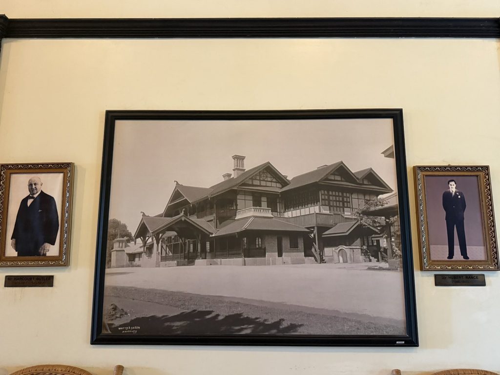走進屋內,空間被整理得像一座小型博物館。牆上掛著黑白老照片,有穿著西裝的英國總督,也有完整呈現宅邸原貌的歷史影像。