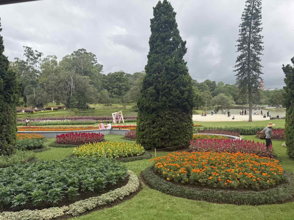 抵達之前,車子先穿過一段筆直的林蔭大道。兩側是規律種植的松樹與高大的喬木,樹冠在頭頂幾乎接在一起,陽光被切成一片一片,灑在路面上。這種「刻意整齊」的自然風景,跟我在緬甸其他地方看到的野生綠意很不一樣——它帶著明顯的規劃痕跡,也透露著英國人想在熱帶山城上重現「家鄉風景」的企圖。