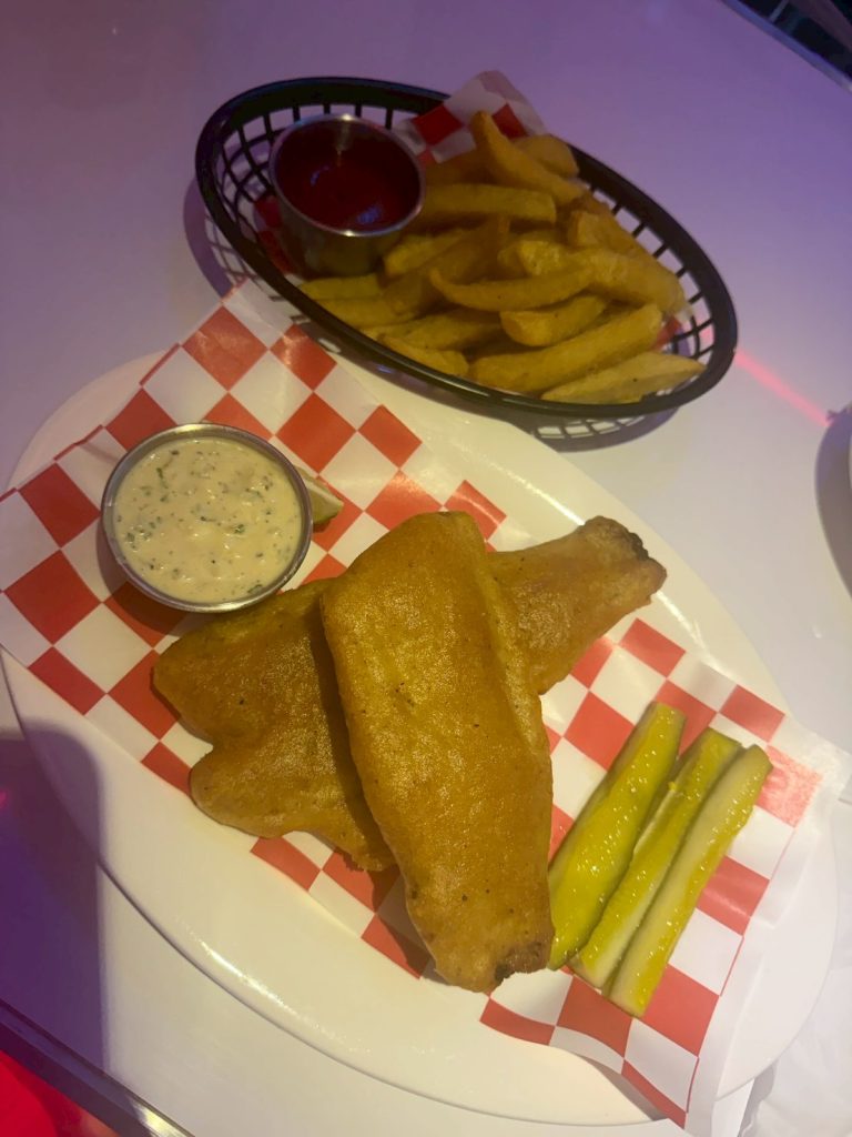 金黃酥脆的炸魚,配上粗薯條與酸黃瓜,是美式經典的完美詮釋。每一口都能感受到外酥內嫩的魚肉與炸薯條的滿足感。